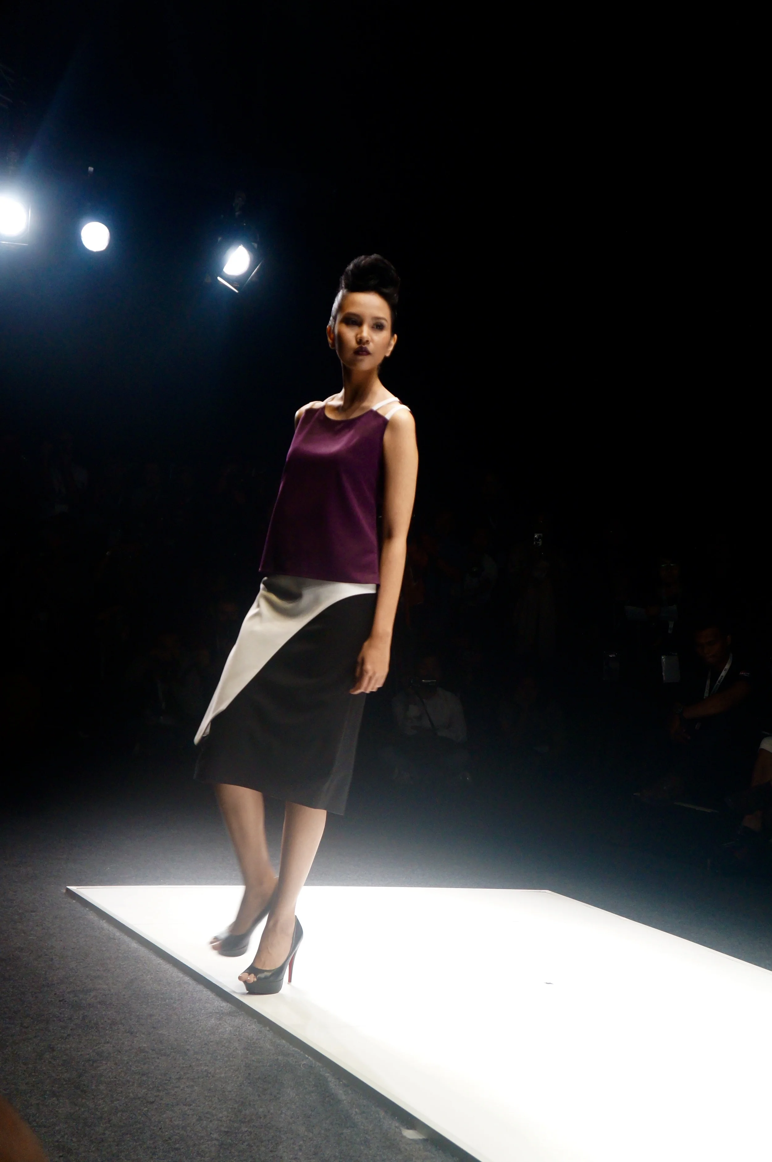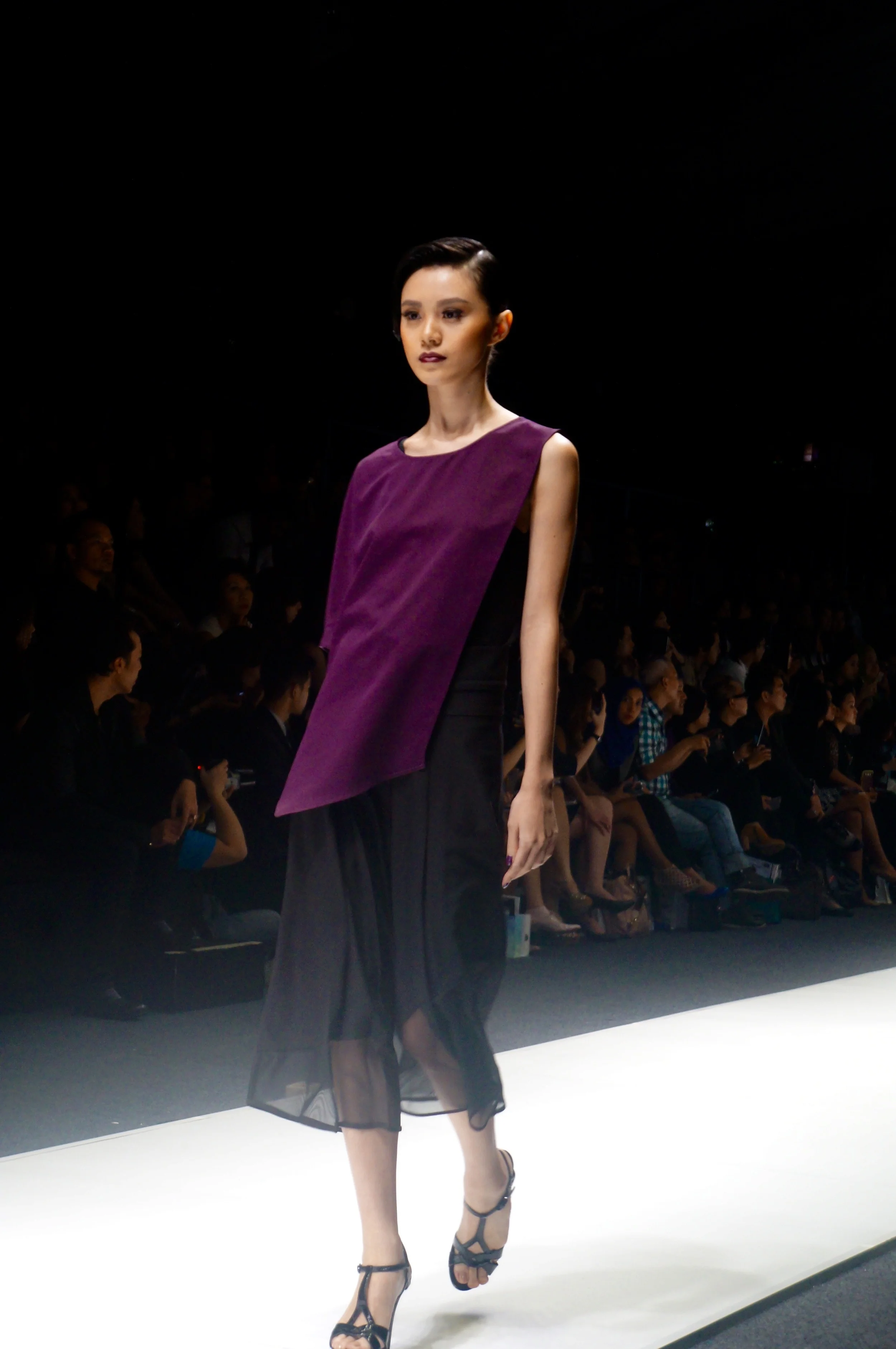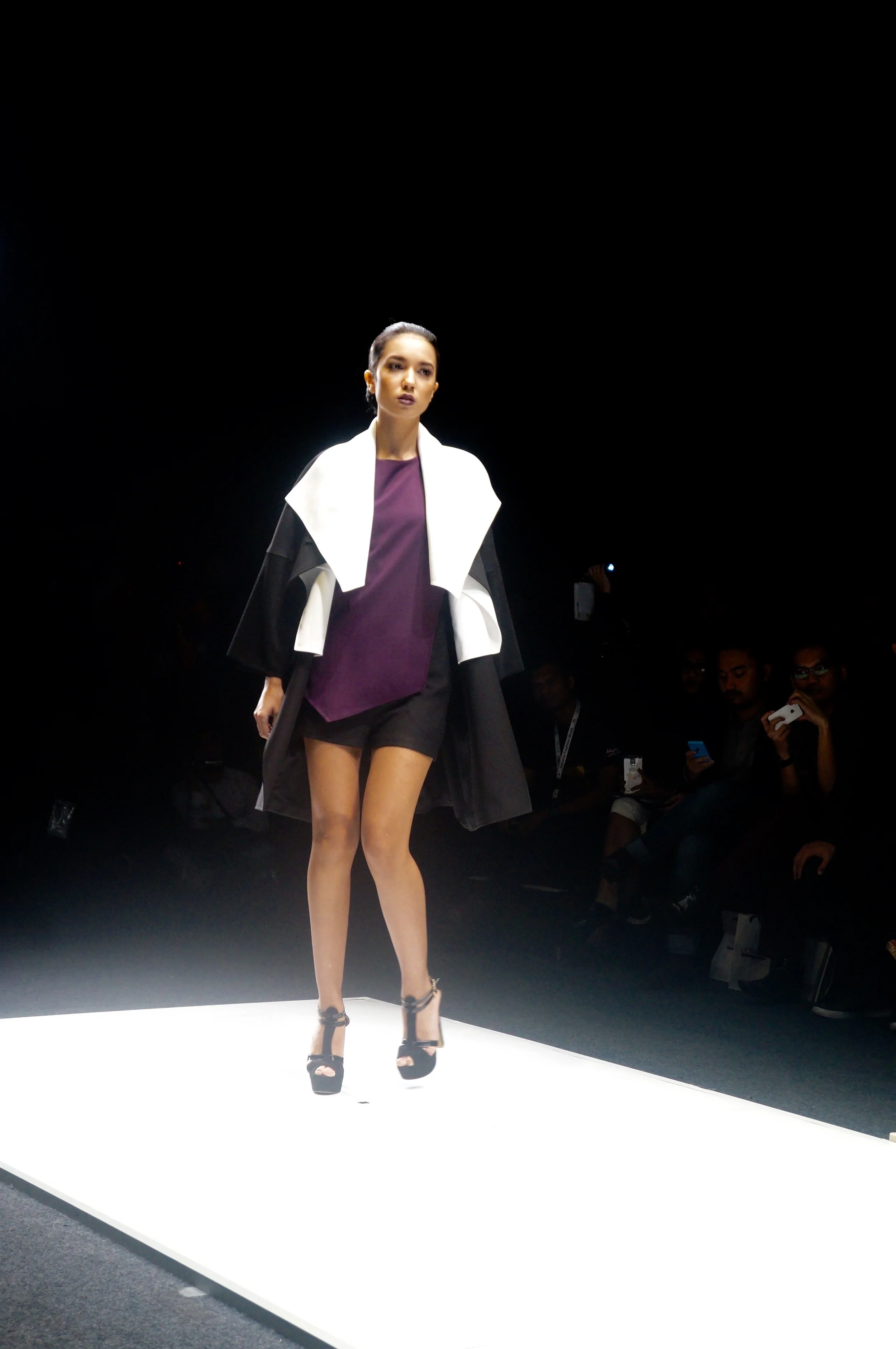 Ardistia once again brought her timeless style back to the runway at JFW 2016, Ardistia's academic backgrounds in engineering and fashion are evident through her extremely well structured pieces. This collection was no exception with classic cuts that played of purple, white and black.