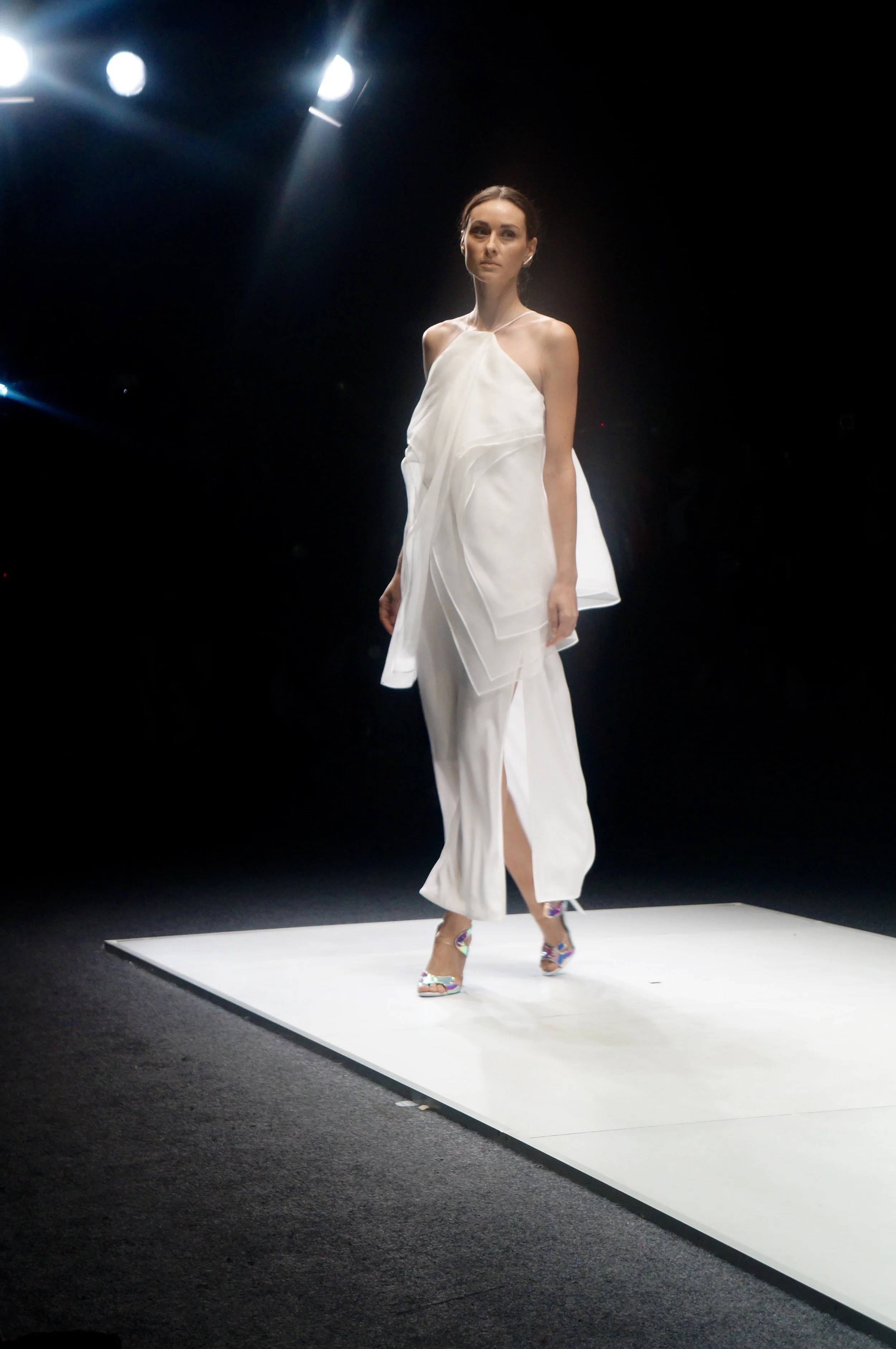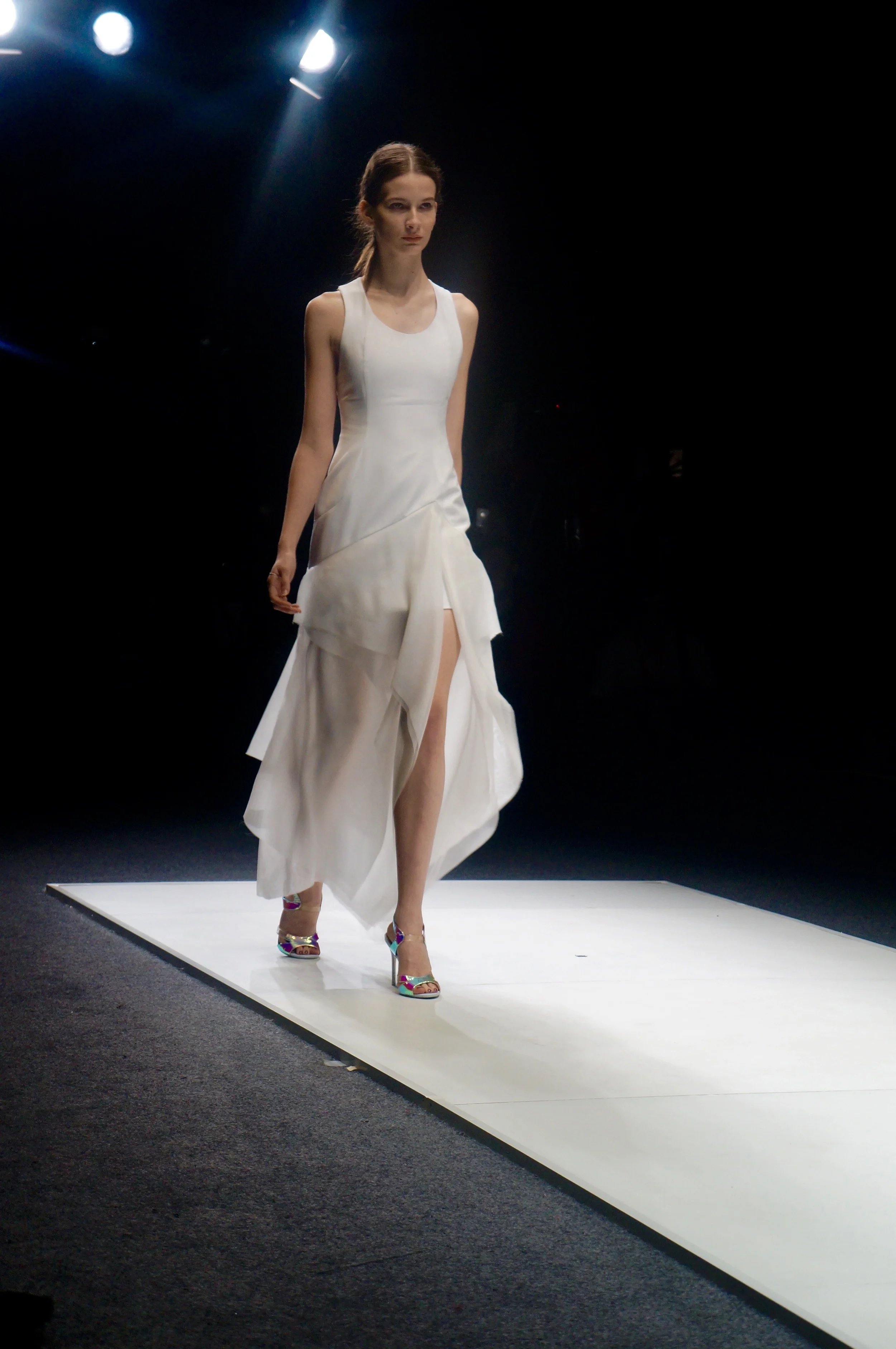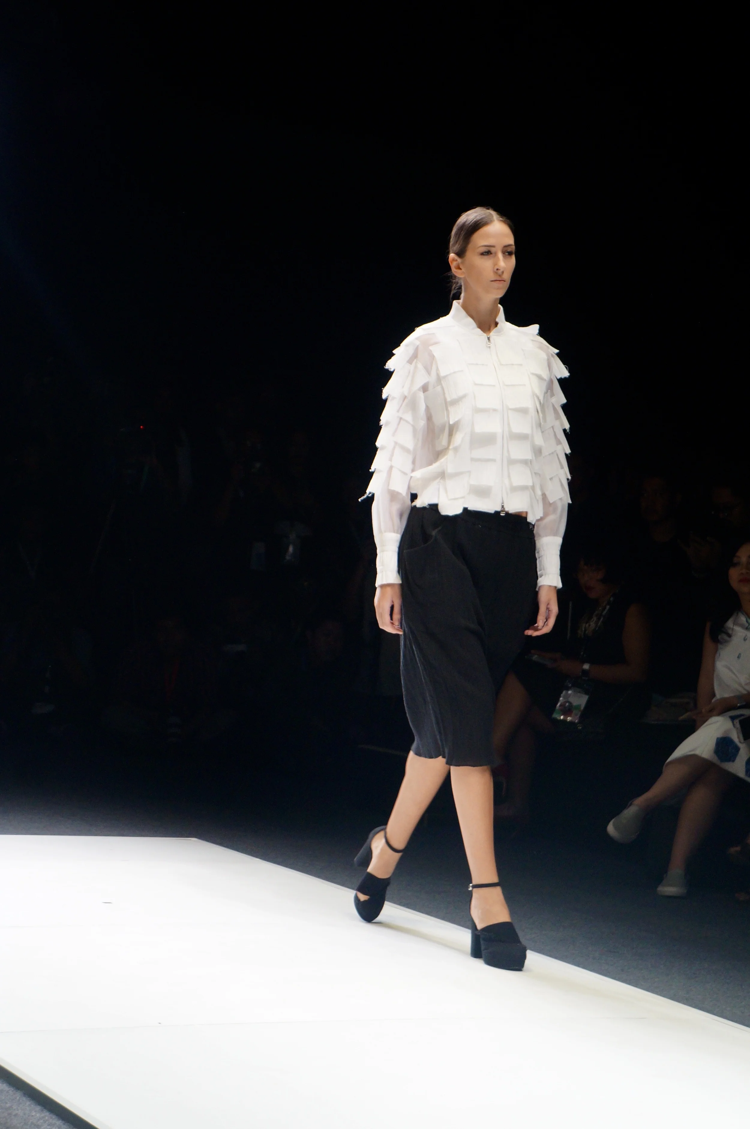 Ardistia once again brought her timeless style back to the runway at JFW 2016, Ardistia's academic backgrounds in engineering and fashion are evident through her extremely well structured pieces. This collection was no exception with classic cuts that played of purple, white and black.