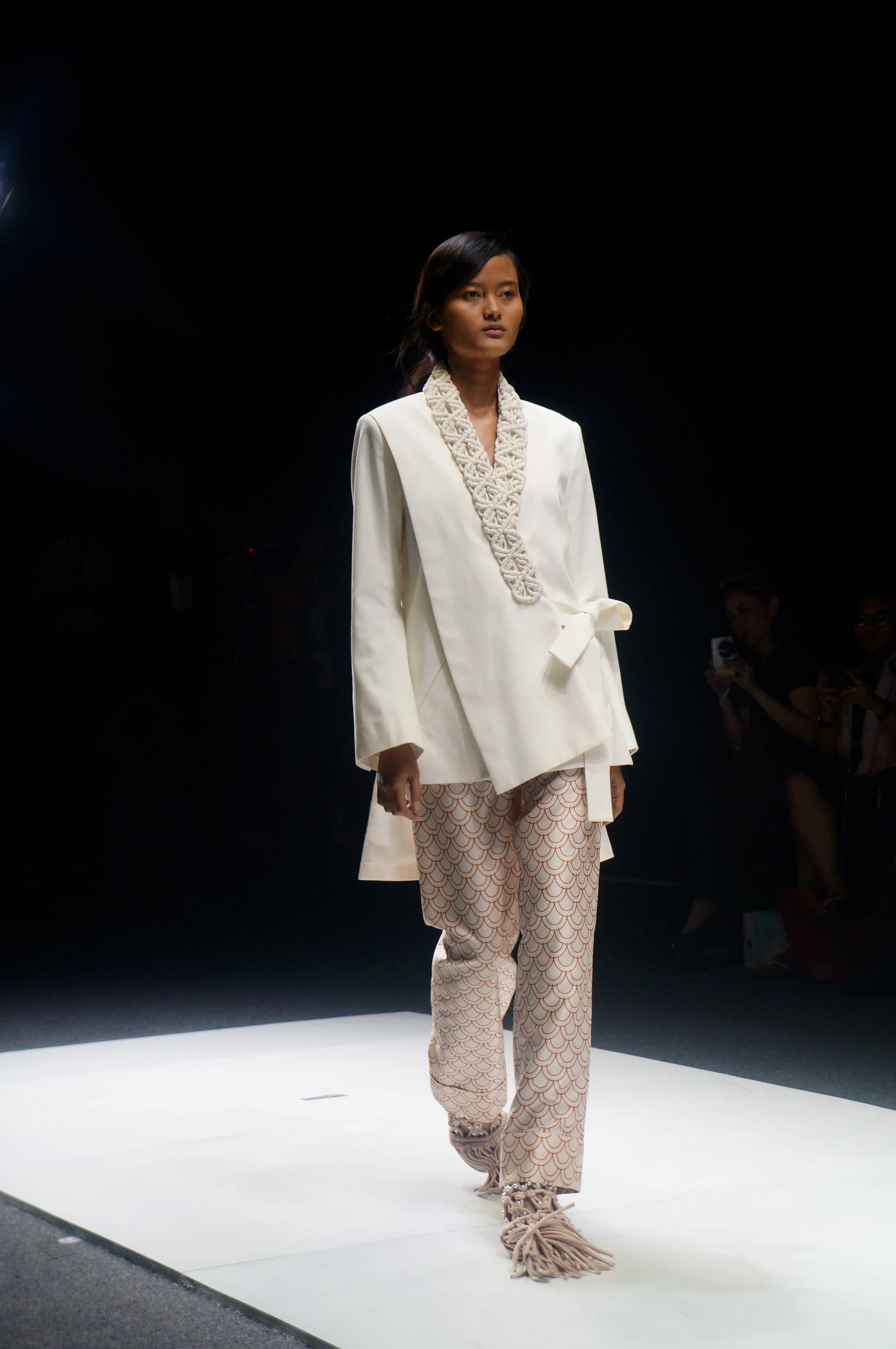 Japanese Designer Suzuki Takayuki's collaboration collection with Michelle Tjokrosaputro was a great example of how beautiful things can be created when cultures collide, The subtle yet strong incorporation of Batik blended perfectly with Suzuki's white garments creating the perfect balance of color